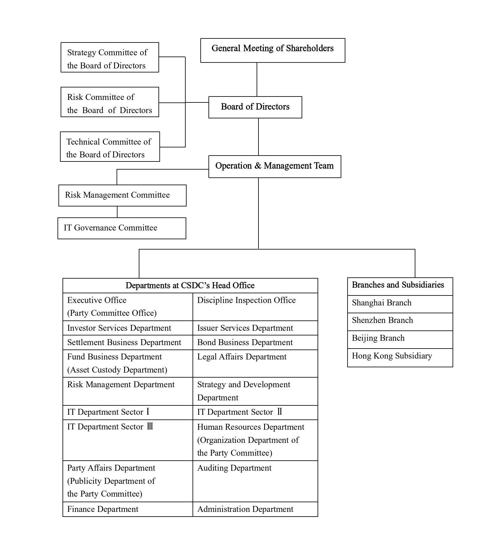 Home > About CSDC > Overview of The Company > Organizational Structure